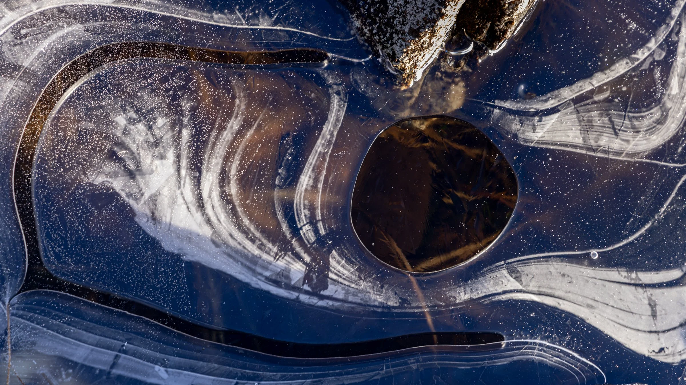 Last week’s images of looking at what’s by your feet continues. I’m still sorting some older images from Scotland. Instead of rocks on a Scottish beach, today on the first day of spring it’s ice on a highland lochan.